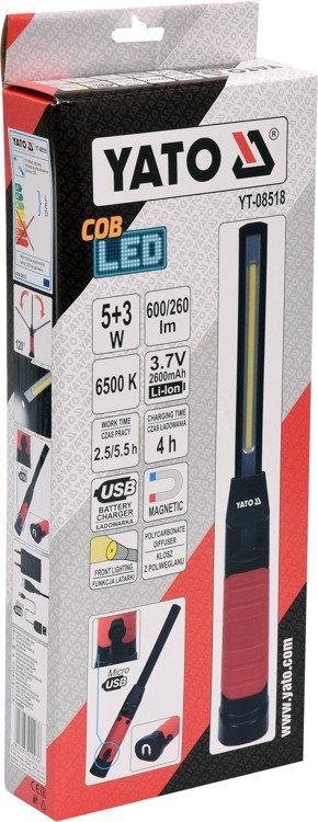 Funkcjonalna lampa warsztatowa 5W z umieszczoną na górze latarką o mocy 3W.