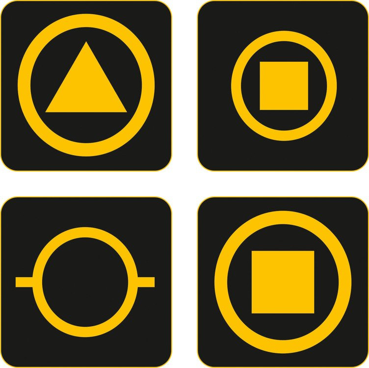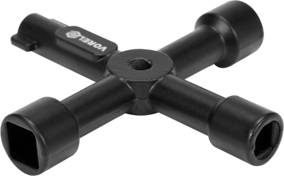 Kluczyk o wymiarach 72 x 72 mm, ramiona fi 9 mm, końcówki o profilach trójkątnym 2x kwadrat i okrągły z wypustami /