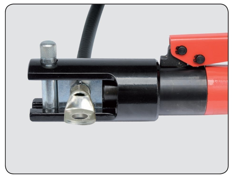 Praska ręczna z siłownikiem hydraulicznym. Przeznaczona do skutecznego zaciskania końcówek na przewodach elektrycznych lub do zaciskania lin.