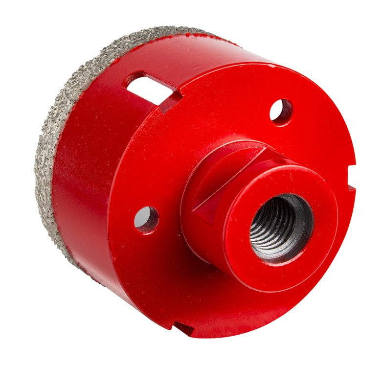 - Boczny otwór w koronkach DRYGRES 20-75 mm pozwala na lepsze chłodzenie i usuwanie pozostałości po wywierceniu każdego otworu. Należy pamiętać o każdorazowym oczyszczeniu i sprawdzeniu wiertła przez rozpoczęciem wiercenia