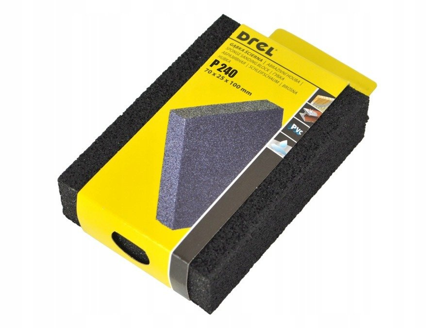 Miękka i wygodna gąbka pokryta warstwą ścierną wykonaną z węglika krzemu (karborundu) renomowanej firmy Drel.