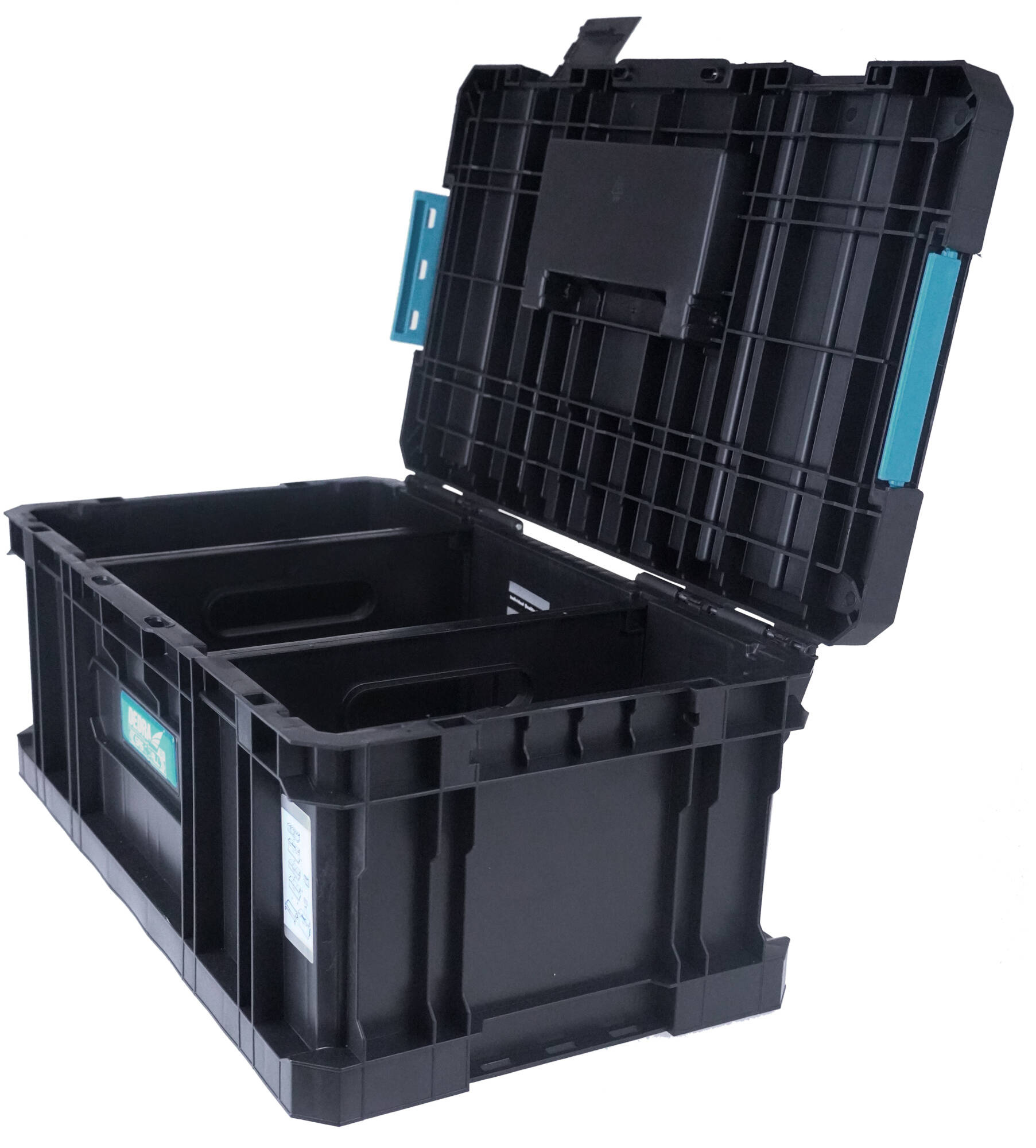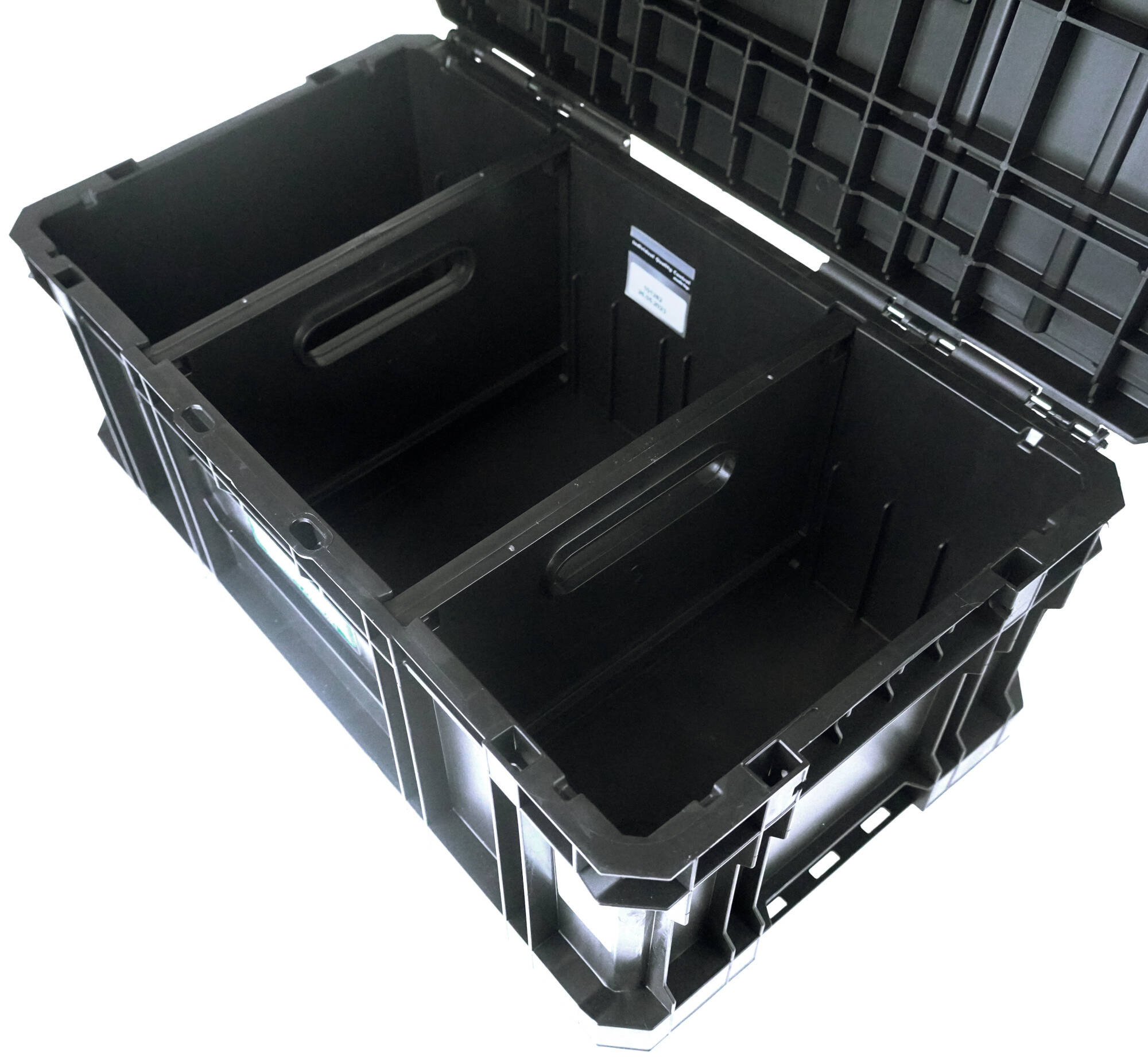 Przemyślana konstrukcja ułatwia dopasowanie skrzyni do indywidualnych potrzeb. We wnętrzu skrzyni znajdują się dwie regulowane przegrody, które można wyjąć bądź przełożyć tworząc bardziej pasujący użytkownikowi układ komór. Skrzynia posiada mocną, wygodną rękojeść z wysokogatunkowego tworzywa, dzięki której można ją łatwo transportować, a poliamidowe zaczepy gwarantują solidne i wytrzymałe połączenie z pozostałymi skrzyniami modułowymi. Gęste ożebrowanie skrzyni zapewnia jej dużą sztywność i odporność na odkształcenia.