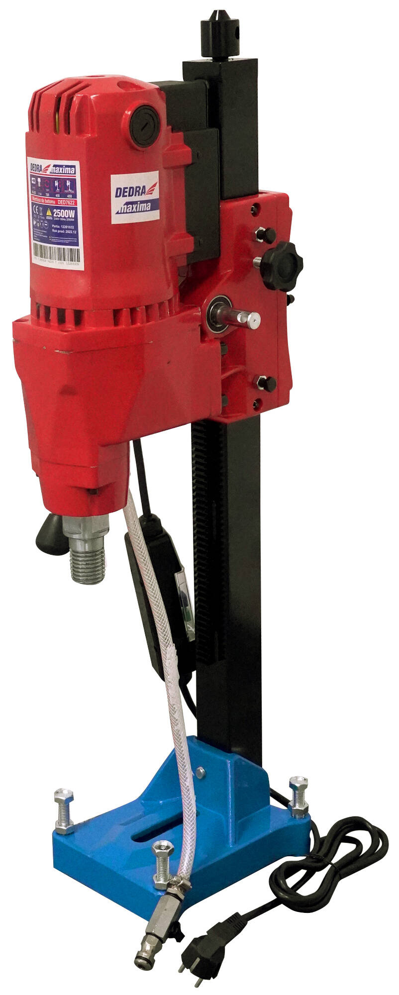 Urządzenie można zastosować do wiercenia w murach, betonie, betonie zbrojonym, żelbecie czy kamieniu. Wiertnica jest przystosowana do pracy na statywie, który powinien być wcześniej zakotwiony do podłoża. Model DED7622 jest wyposażony w jednobiegową przekładnie, która zapewnia optymalną prędkość obrotową do zastosowanej korony diamentowej. Urządzenie przeznaczone jest do pracy z koronami od 80 do 205 mm. Korony mocowane są na trzpieniu gwintowanym 1 ¼''. Zintegrowany system dozowania wody pozwoli na skuteczne chłodzenie koron oraz zminimalizuje pylenie podczas wiercenia.