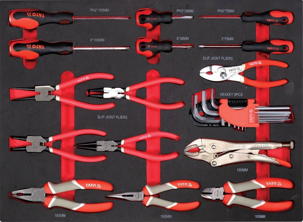 W trzech z siedmiu szuflad znajdują się aż 157 profesjonalnych narzędzi w piankowych wkładach EVA.