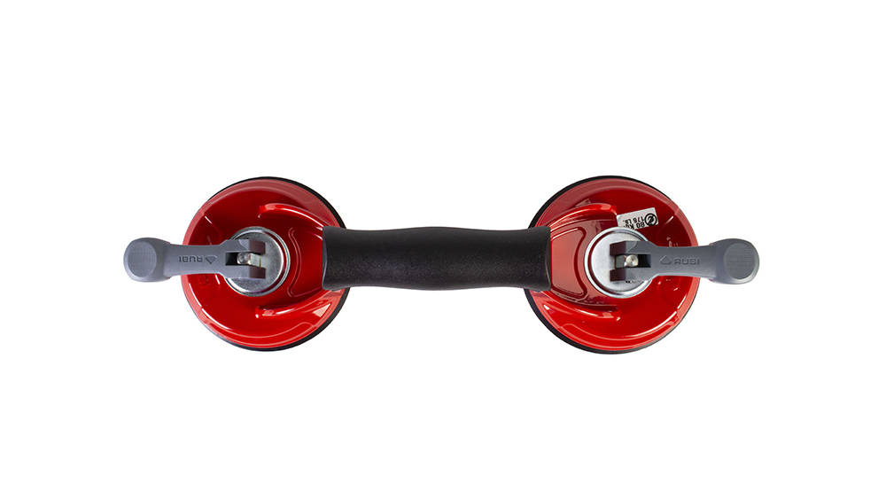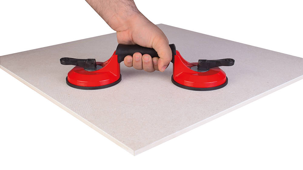 Ergonomiczny uchwyt przyssawki pojedynczej od RUBI pozwala użytkownikowi na przyjęcie najlepszej pozycji podczas przenoszenia płytki, redukując wysiłek.