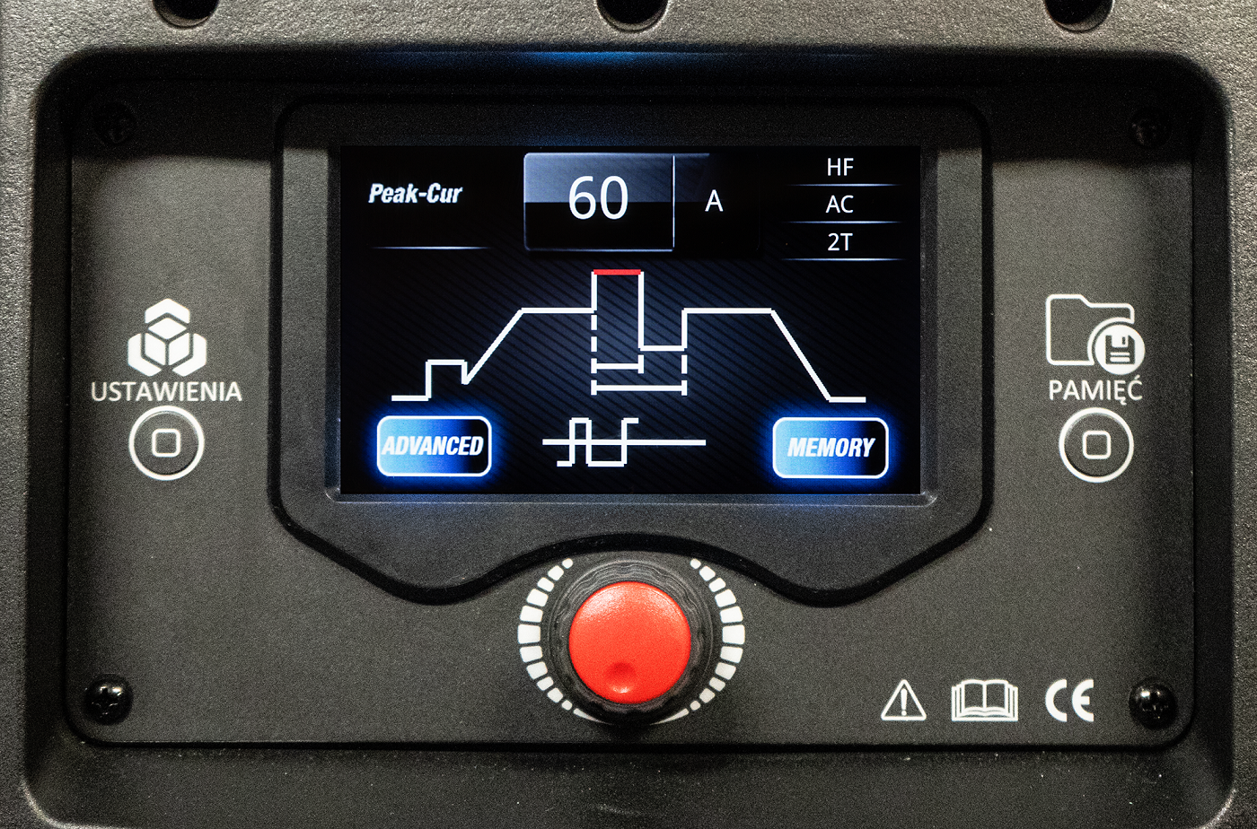 - częstotliwości pulsu – tylko w trybie TIG DC PULS (0,5-200 Hz)
