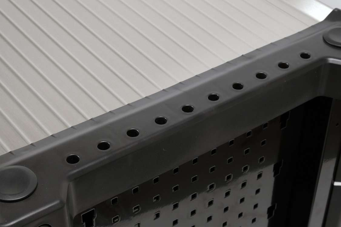 Na bocznych panelach znajduje się uniwersalna perforacja umożliwiająca dalsze zagospodarowanie przestrzeni. Na rogach znajdują się elastyczne odbojniki zapobiegające uszkodzeniom.