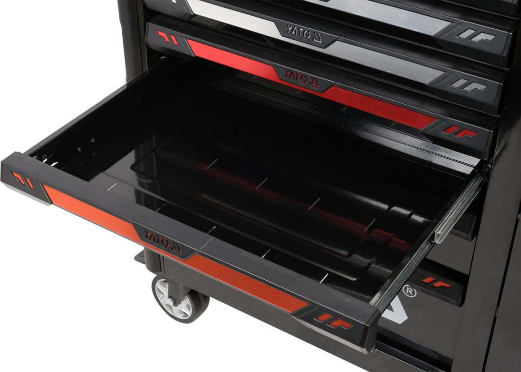 Szafkę serwisową YT-09033 można dowolnie doposażyć we wkłady narzędziowe będące w szerokiej ofercie marki YATO.