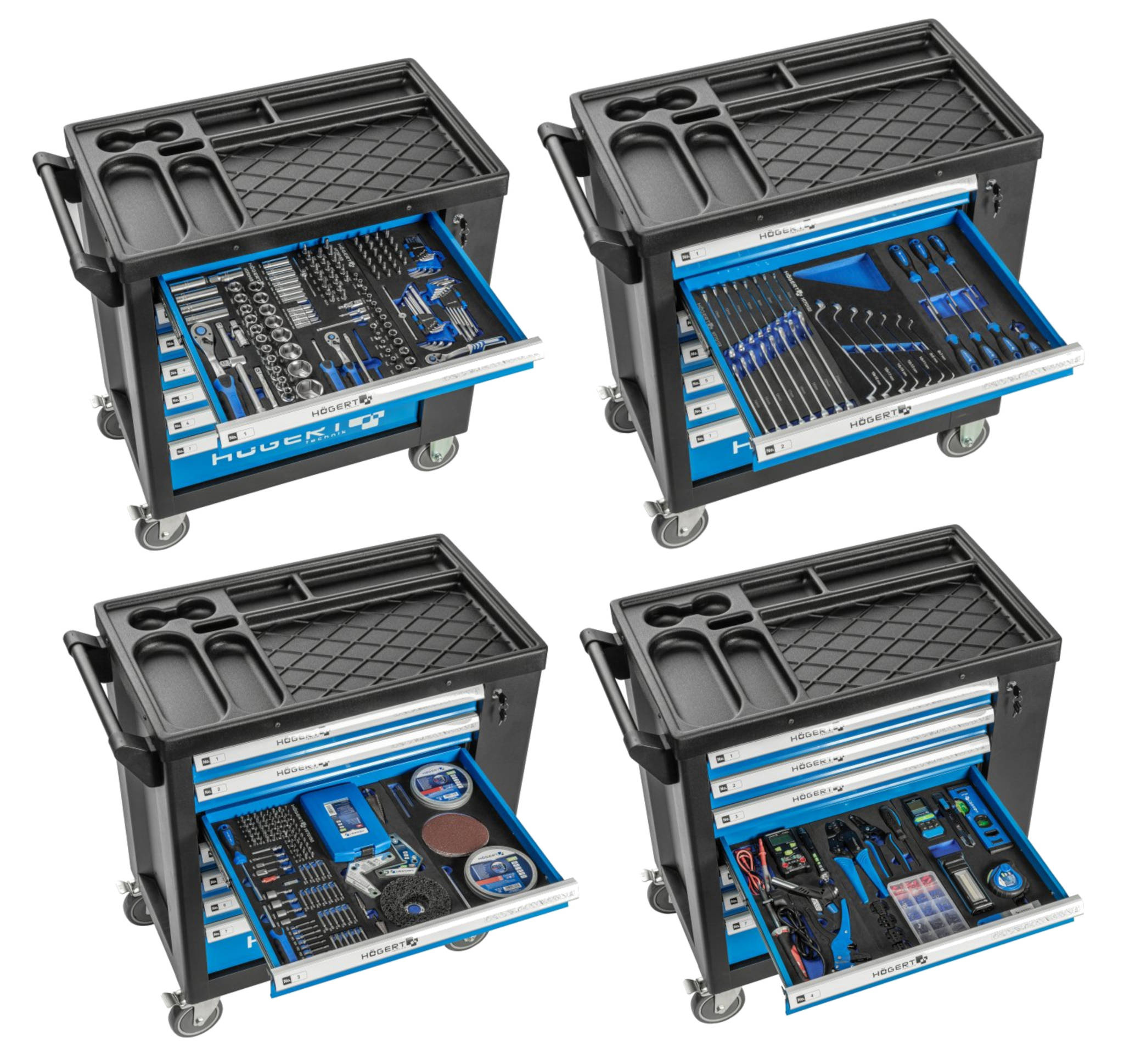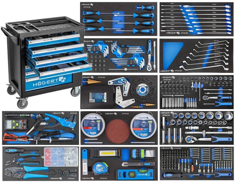 Praktyczna i pojemna szafka warsztatowa z 7 szufladami oraz bocznym schowkiem. Solidna konstrukcja daje gwarancje długotrwałego użytkowania jej w warunkach warsztatowych, natomiast 4 kółka, w tym 2 koła skrętne, zapewniają mobilność, dzięki czemu szafka zawsze znajdzie się w odpowiednim miejscu. Odpowiednio dobrane wyposażenie szafki składające się aż z 544 elementów, dedykowane warsztatom rzemieślniczym oraz serwisom samochodowym sprawia, że doskonale sprawdzi się w pracy każdego profesjonalisty.