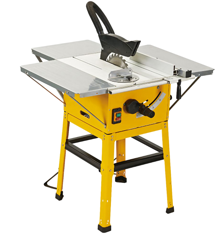 - Stabilna konstrukcja z dodatkowymi blatami roboczymi świetnie sprawdza się przy cięciu drewna, płyt i innych materiałów drewnopochodnych