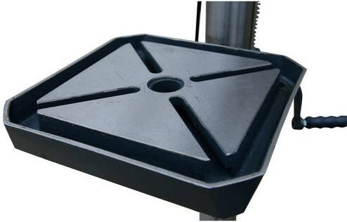 Masywna płyta podstawy o dużych wymiarach z rowkami, mocno użebrowana z tyłu