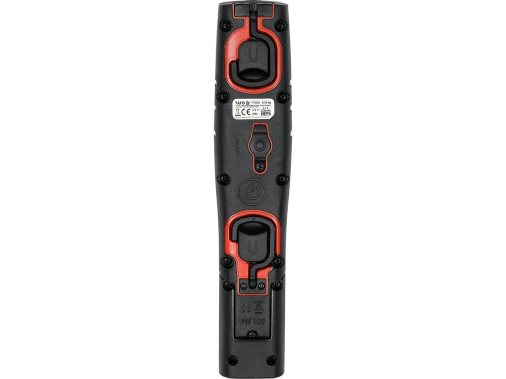 Mocna i wytrzymała lampa warsztatowa, pracująca jako naświetlacz lub latarka. Regulowany uchwyt 180˚, dwa haki do podwieszania i magnes w podstawie i z tyłu lampy ułatwiają wygodne użytkowanie. Cztery tryby świecenia umożliwią dobór mocy światła do wykonywanej czynności i poziomu naładowania baterii. W trybie naświetlacza emituje światło o mocy 250/500/1000 lm, w trybie latarki 200 lm. Klasa szczelności IP65 zapewnia wysoką wodoszczelność i pyłoszczelność. Klasa ochrony mechanicznej IK09 oznacza wytrzymałość na uderzenia i upadki. Lampa wyposażona jest w litowo-jonowy akumulator o pojemności 3350 mAh, który umożliwia pracę do 8 h.