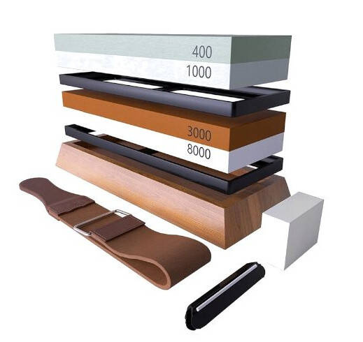 Najmniejsza gradacja służy do ostrzenia wstępnego oraz naprawy ostrza, natomiast kamień z gradacją 1000 służy do wygładzenia krawędzi tnącej, idealnie sprawdza się w codziennym użytku.