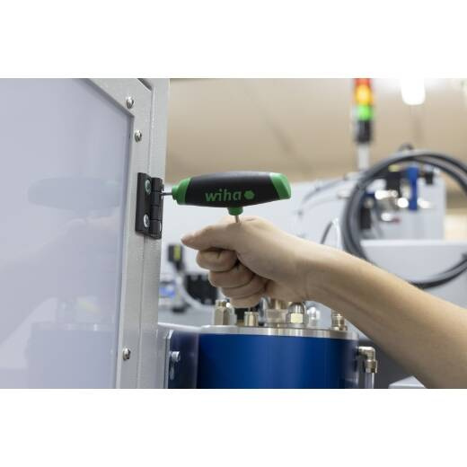 Rękojeść T ComfortGrip do klucza trzpieniowego firmy Wiha z trzonem bocznym jest narzędziem stosowanym w sytuacjach wymagających przyłożenia znacznych momentów dokręcania w sposób komfortowy.