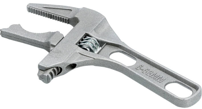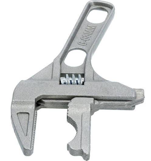 Dzięki rozsuwanym, regulowanym szczękom, za pomocą pokrętła ślimakowego, można dowolnie zmniejszyć lub zwiększyć jego rozmiar i dopasować do większości nakrętek czy rur.