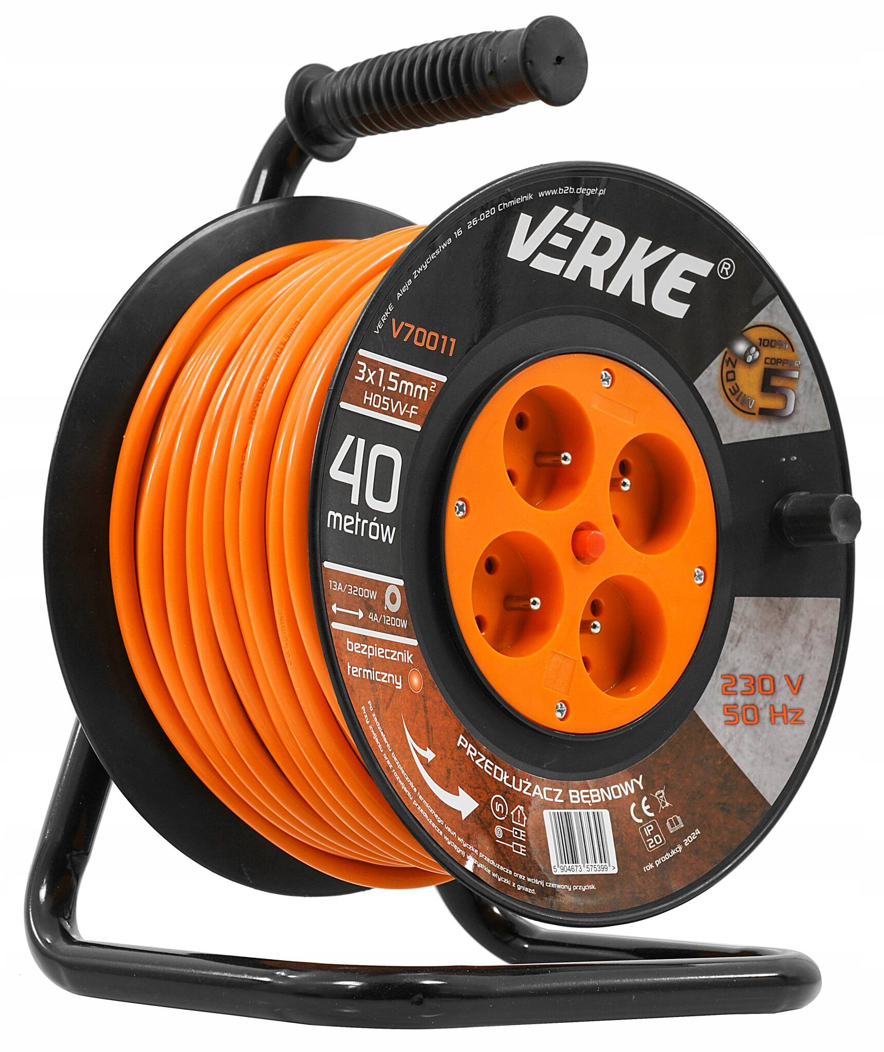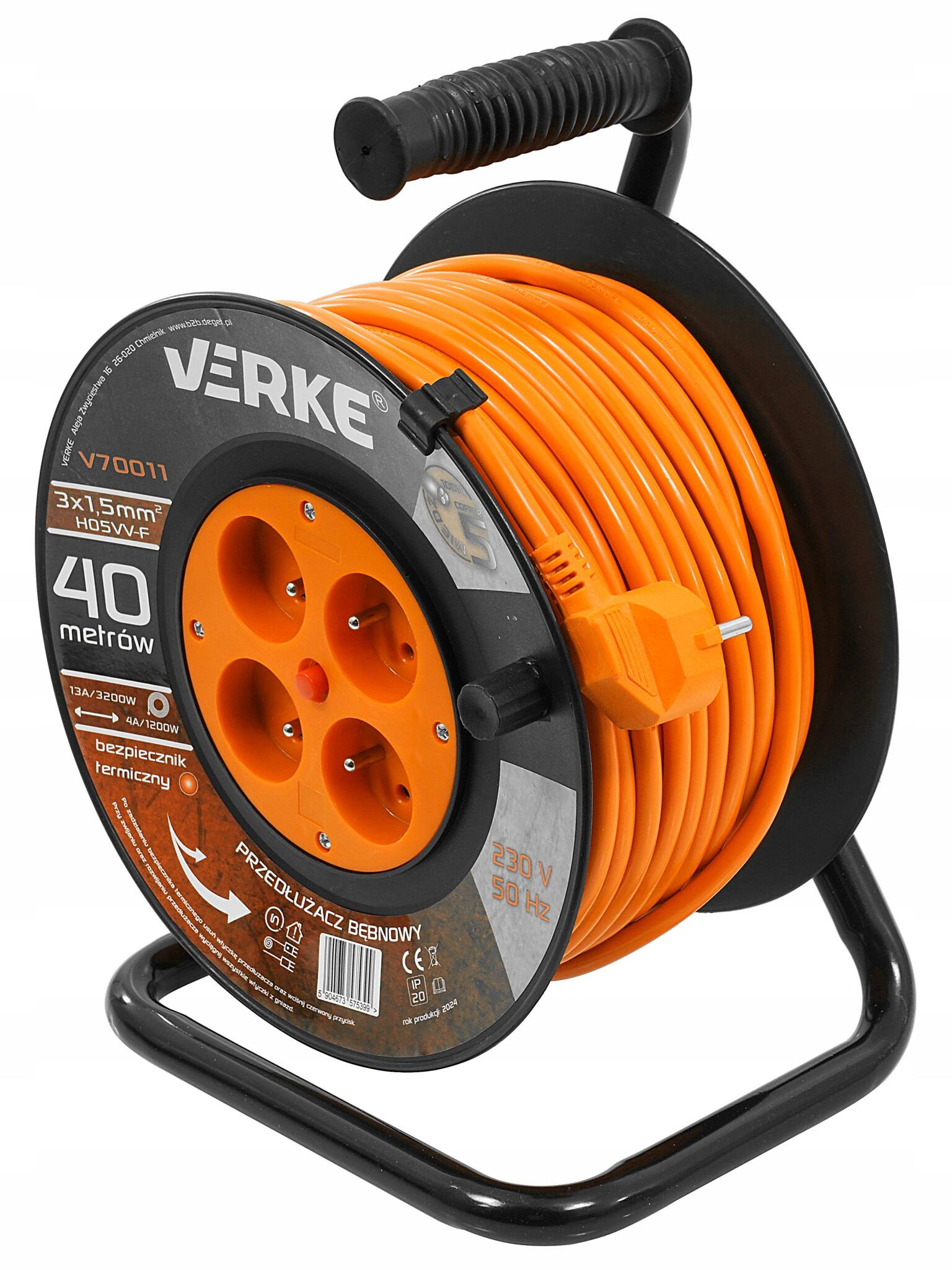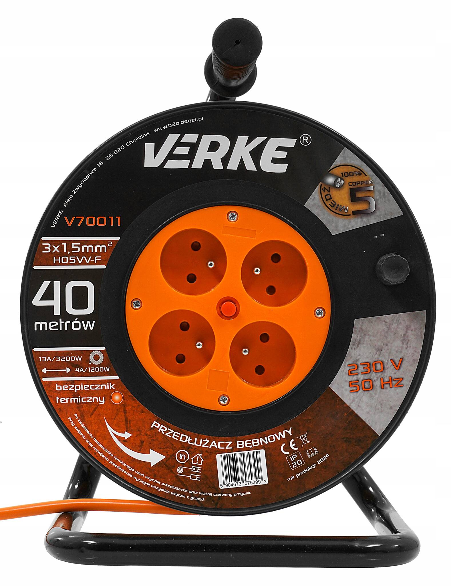 Verke V70011 Przedłużacz bębnowy 3x1,5mm, 40m