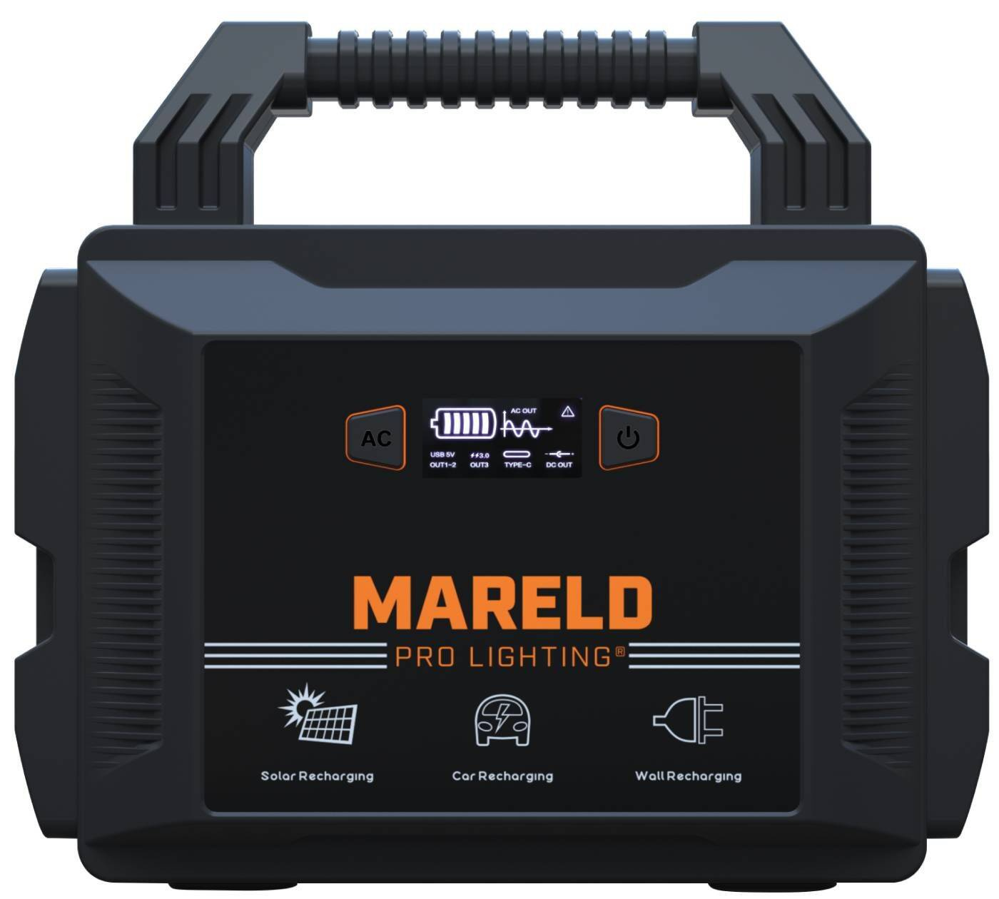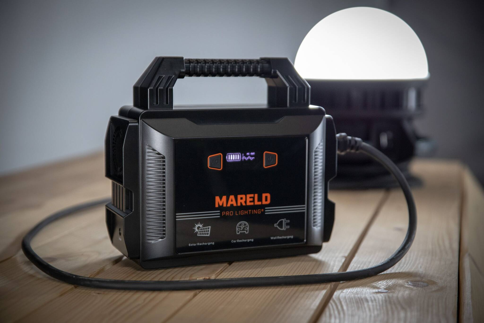 MARELD Powerstation 300W - pojemność baterii 3,7 V, 80 000 mAh, 296 Wh. Ma moc znamionową 300 W, może również poradzić sobie z chwilową mocą szczytową 350 W. Zaopatrzona w jedno gniazdo 230V, 3 gniazda USB w tym jedno do szybkiego ładowania, wyjścia DC i USB typu C.