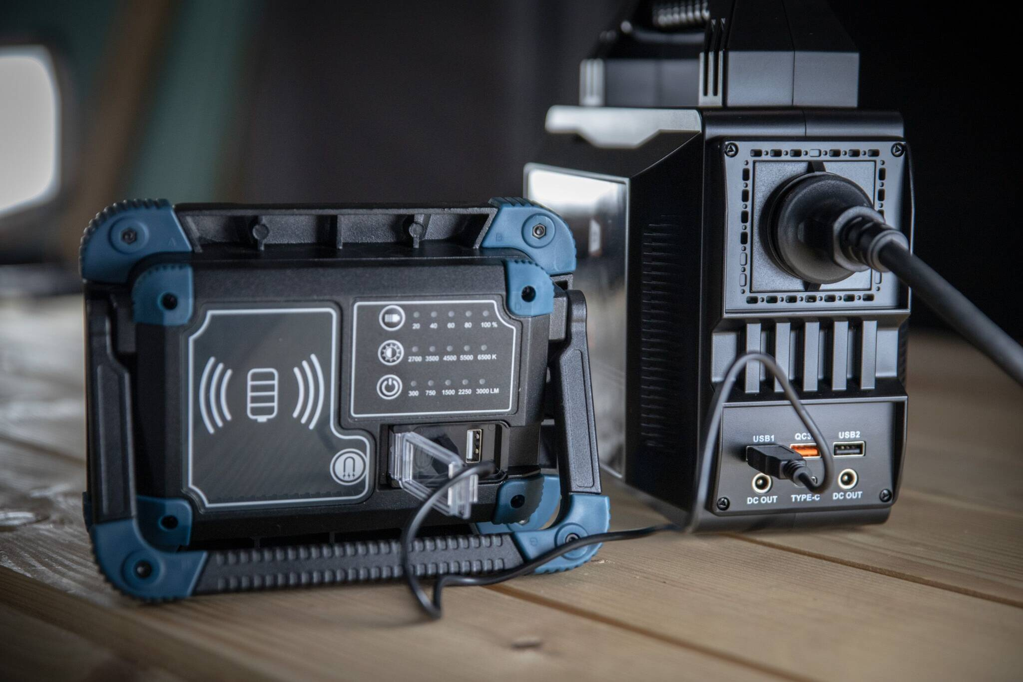 Urządzenie może pracować również jako lampa robocza - panel Led na jednym z boków. Lekkie i poręczne urządzenie wszechstronnego zastosowania, umożliwia korzystanie z każdego źródła zasilania w tym samym czasie.