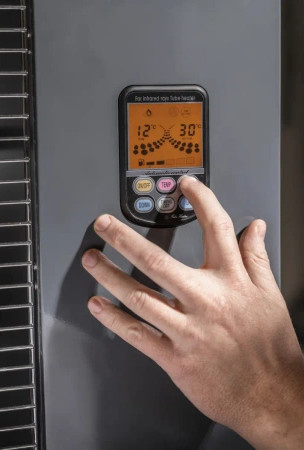 Nagrzewnica charakteryzuje się także łatwością obsługi dzięki cyfrowemu panelowi sterowania z czytelnym wyświetlaczem LCD. Użytkownik ma możliwość precyzyjnego ustawienia temperatury oraz dostosowania czasu pracy za pomocą timera i opcji automatycznego wyłączenia, co zapewnia wygodę i elastyczność w użytkowaniu.