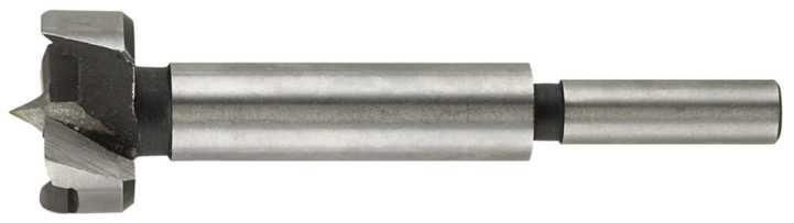 Ze stali narzędziowej. Chwyty cylindryczne. Z kolcem i dwoma ostrzami. Wiertło do wywiercania sęków w drewnie z bardzo małym strzępieniem krawędzi.