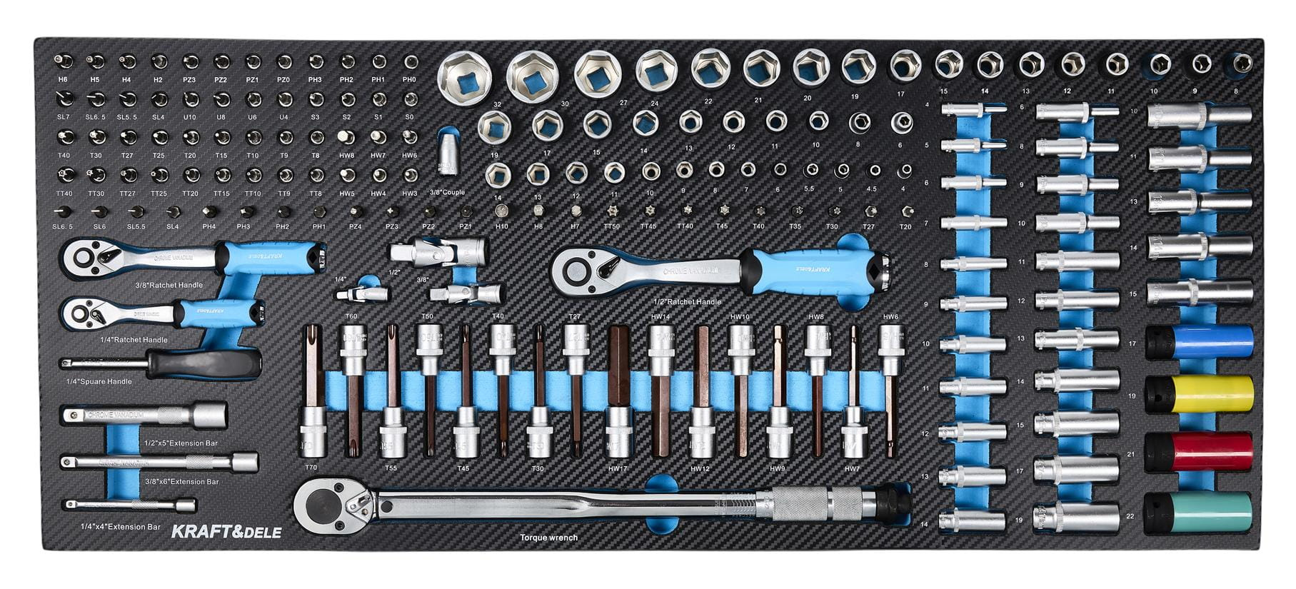 W komplecie znajduje się 501 elementów wysokiej jakości, które pozwolą wykonywać różnorodne prace z precyzją i trwałością.
