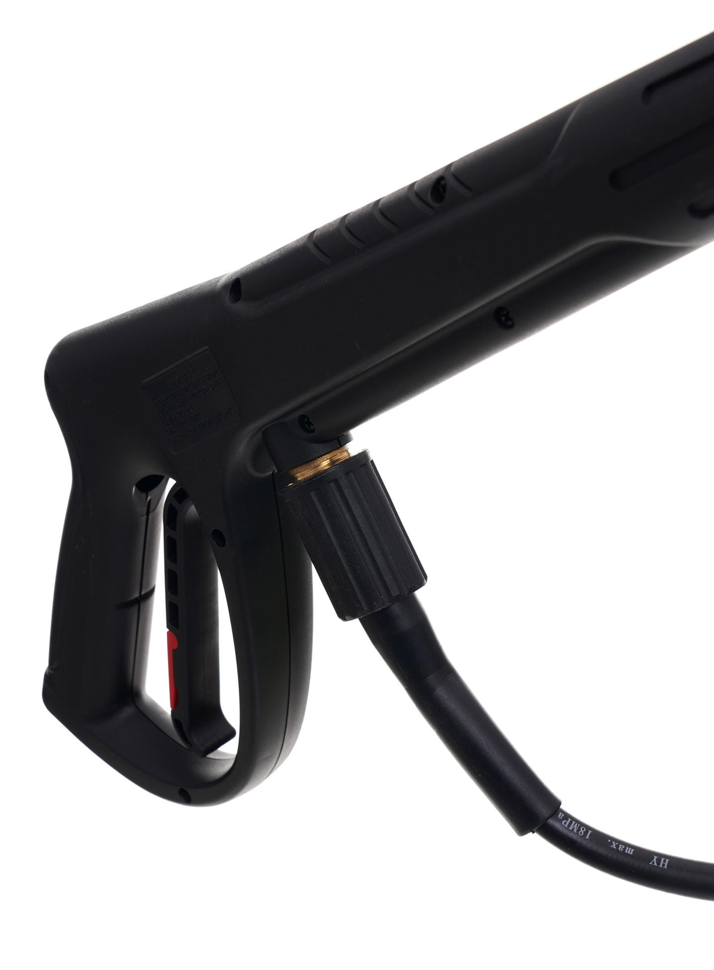 Myjka wyposażona jest w system FULL AUTO-STOP, który automatycznie odłącza silnik po zwolnieniu spustu pistoletu – co chroni pompę, oszczędza wodę i energię.