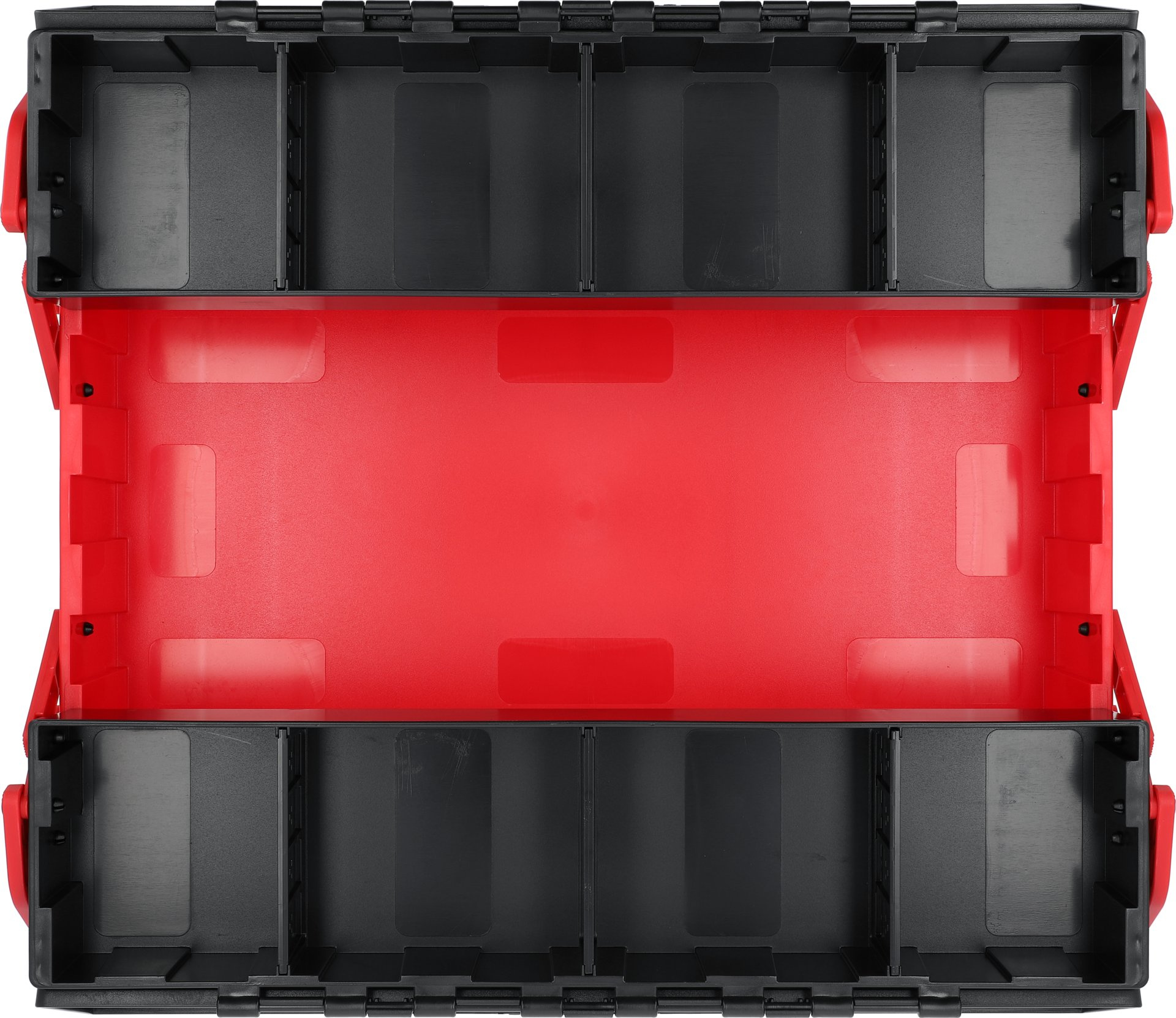 Kompaktowe wymiary 460 x 265 x 158 mm oraz poręczny uchwyt ułatwiają przechowywanie i transport, czyniąc skrzynkę funkcjonalnym wyposażeniem każdego majsterkowicza lub fachowca.