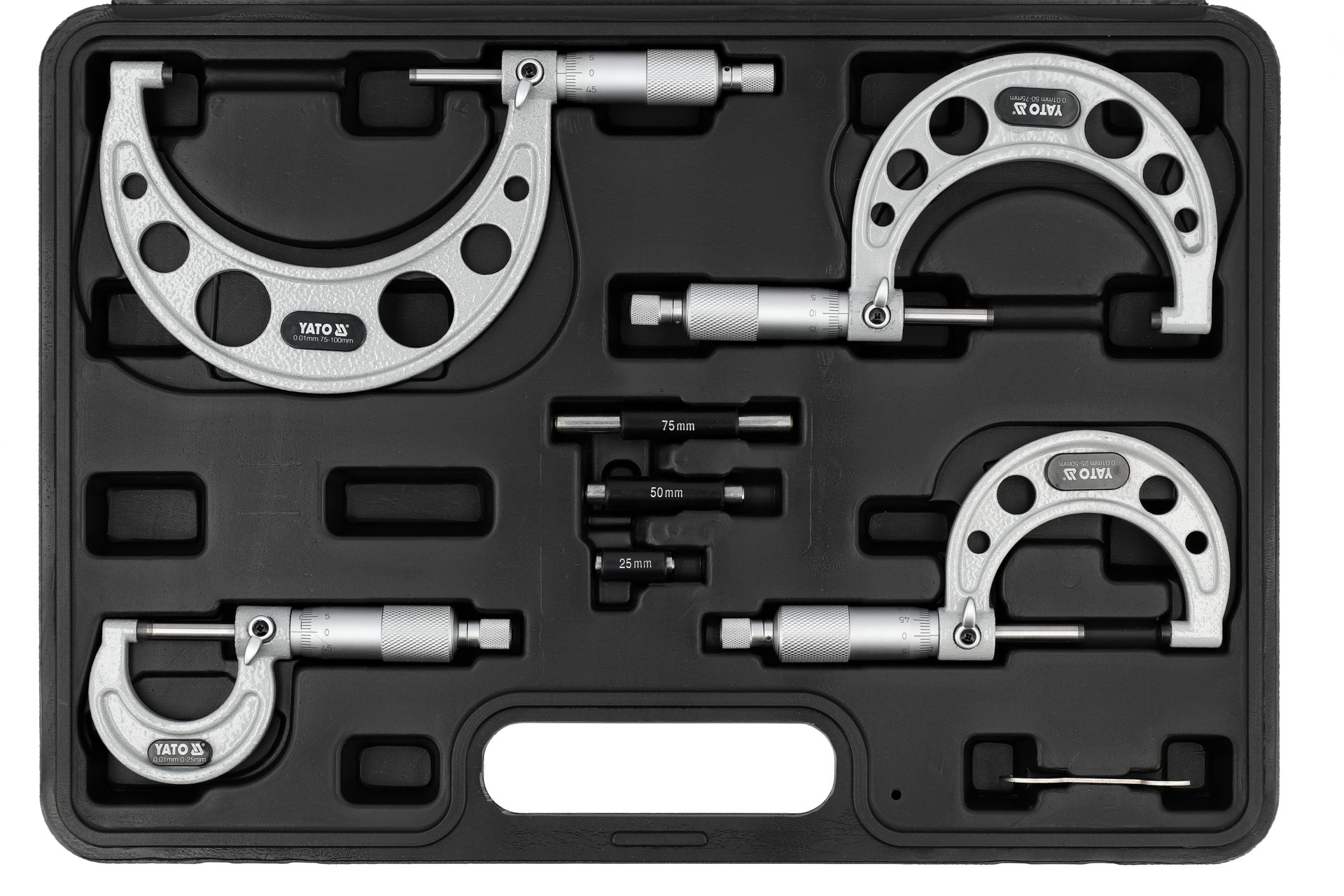 Yato YT-72304 Zestaw czterech mikrometrów zewnętrznych walizka 0-100 mm