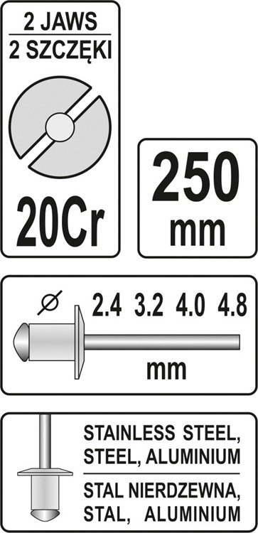 Nitownica ręczna przeznaczona do nitów zrywalnych o średnicach 2,4 / 3,2 / 4,0 / 4,8 mm .
