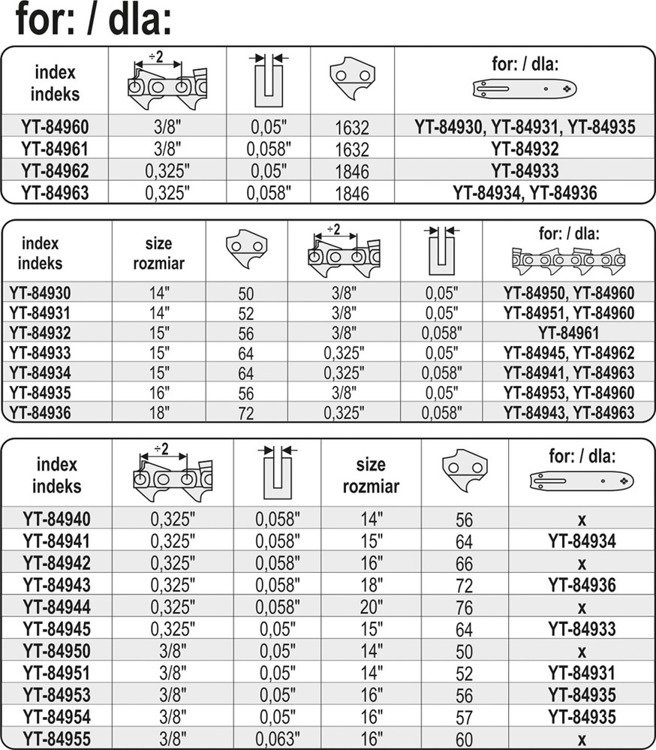 Umożliwiają zakuwanie łańcuchów na bębnach YATO, a także serwisowanie łańcuchów YATO oraz innych producentów.